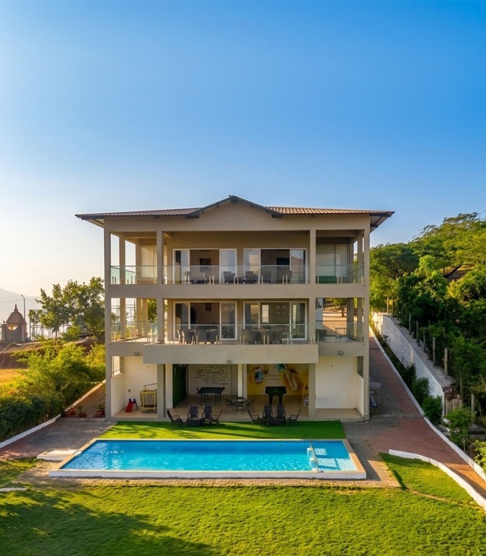 Step into elegance and comfort at The Arowana Cliff, a spacious 4 BHK retreat perfect for families, friends, or groups seeking a private escape. Surrounded by serene hills, the villa offers stunning views, contemporary interiors, and a peaceful atmosphere that makes every stay truly relaxing.